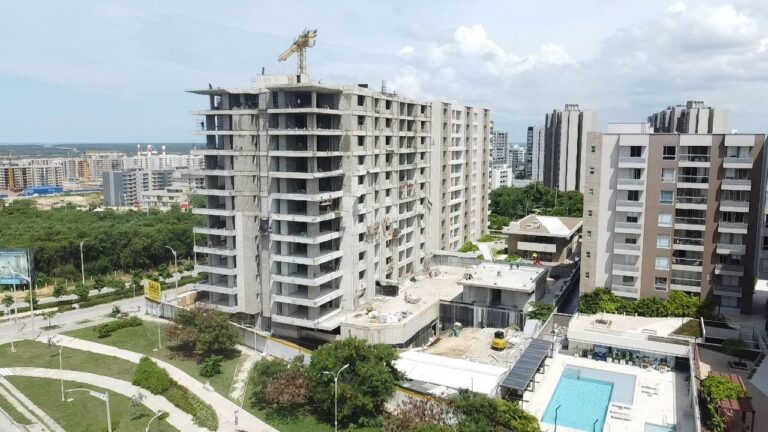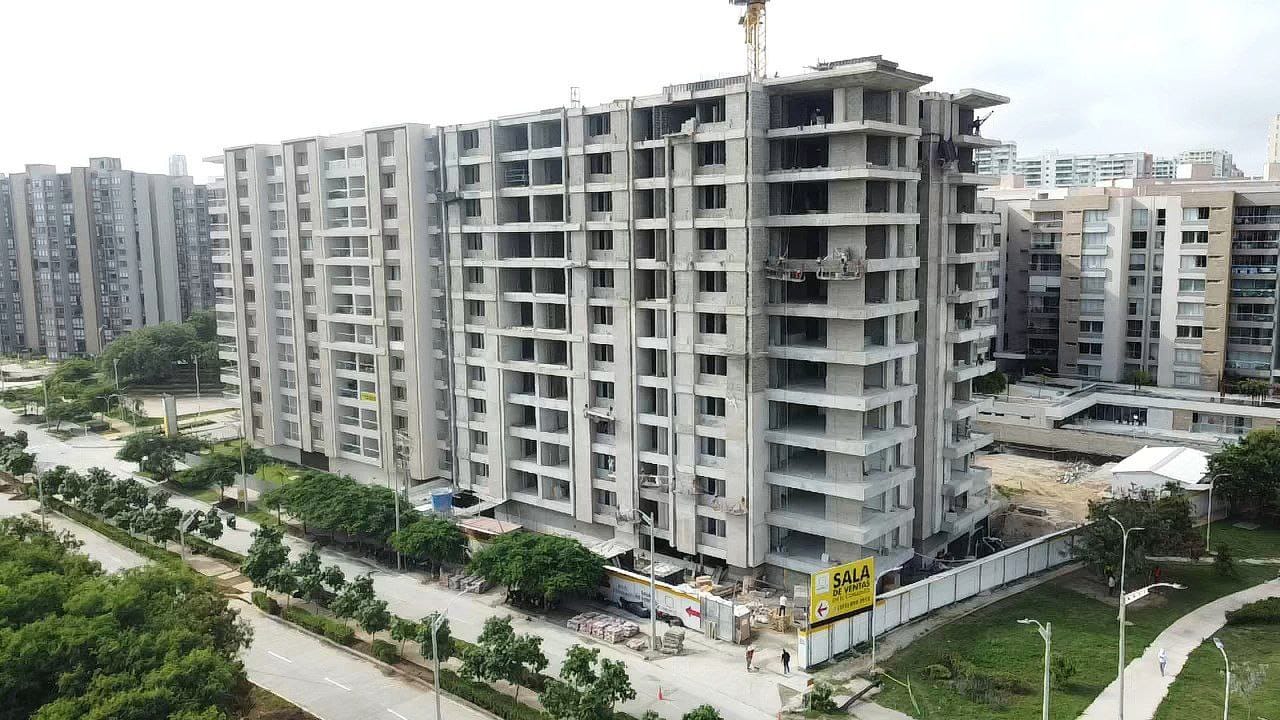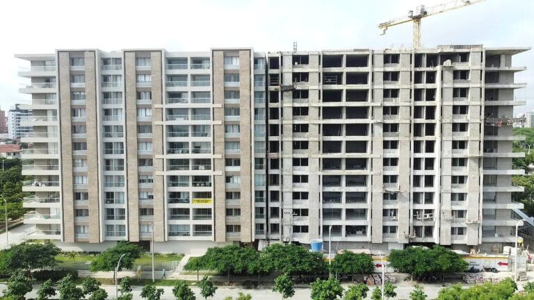 Construcción Conjunto Residencial Monterivera Etapa 1 y 2. Dos torres de 11 pisos, 2 niveles de parqueaderos, 132 apartamentos.