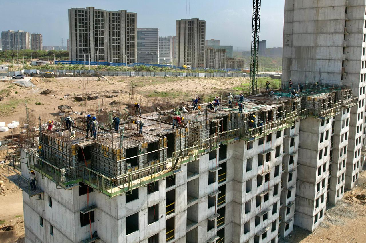 Construcción del Conjunto Residencial Reserva de la Ciénaga. Cuatro Torres de 16 pisos, 640 apartamentos.